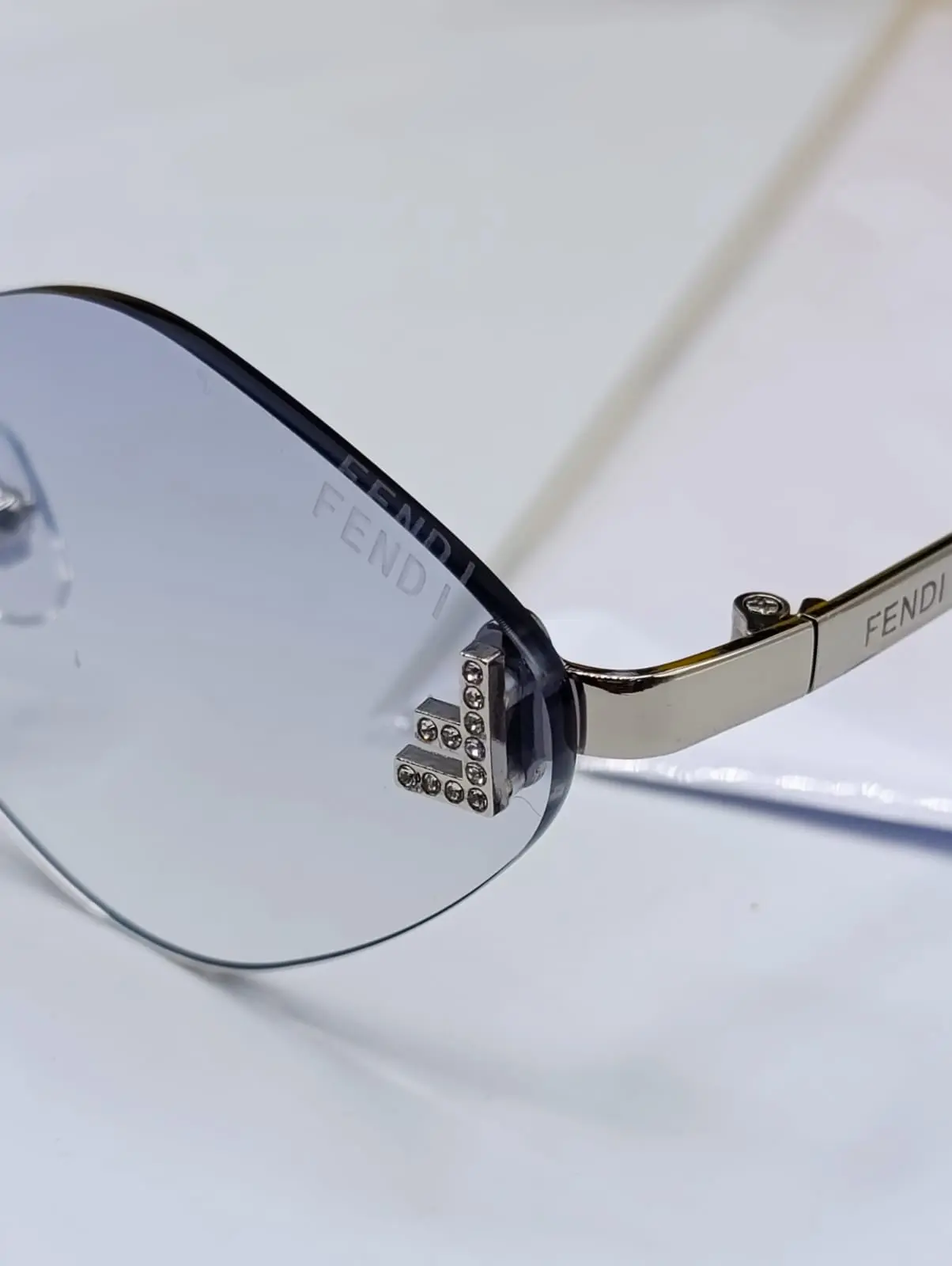The Almond Shape Blue Rimless Sunglasses comes with the brand box, card, wipe cloth, and carry pouch for everyday use.