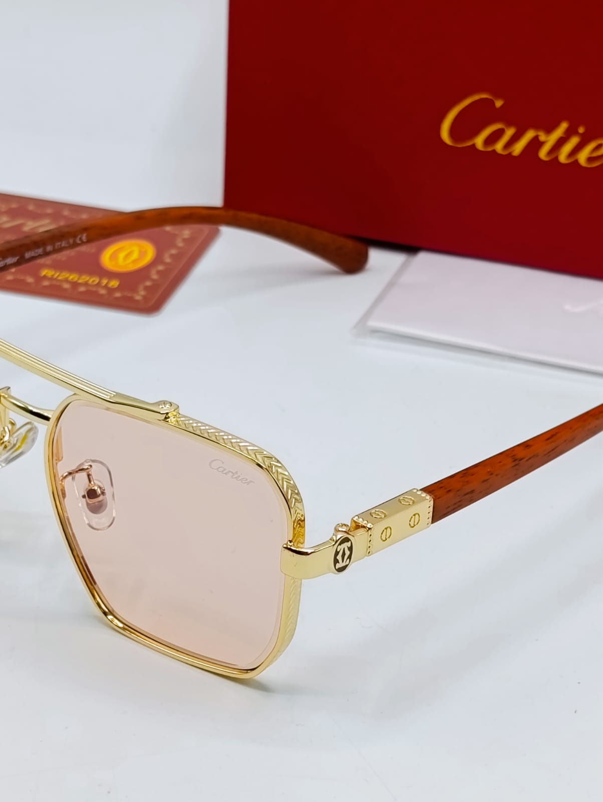 The Golden Frame Pink Lens Sunglasses comes with the brand box, card, wipe cloth, and carry pouch for everyday use.