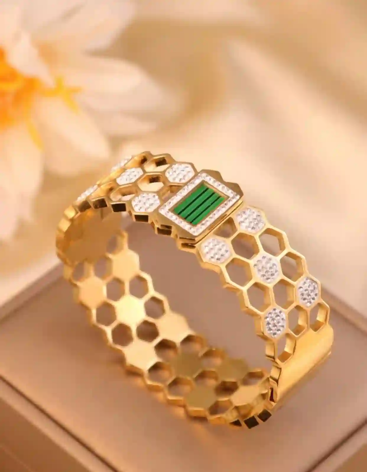 Whether you wear shalwar kameez for friends day out, or put on western wear, Trendy Golden Bracelet accentuates your arms. Lightweight yet luxurious, Trendy Golden Bracelet feels comfortable even during long events. The rich gold plating and anti-tarnish coating ensure your set stays as radiant as day one – just like premium golden jewellery but at a fraction of the cost.